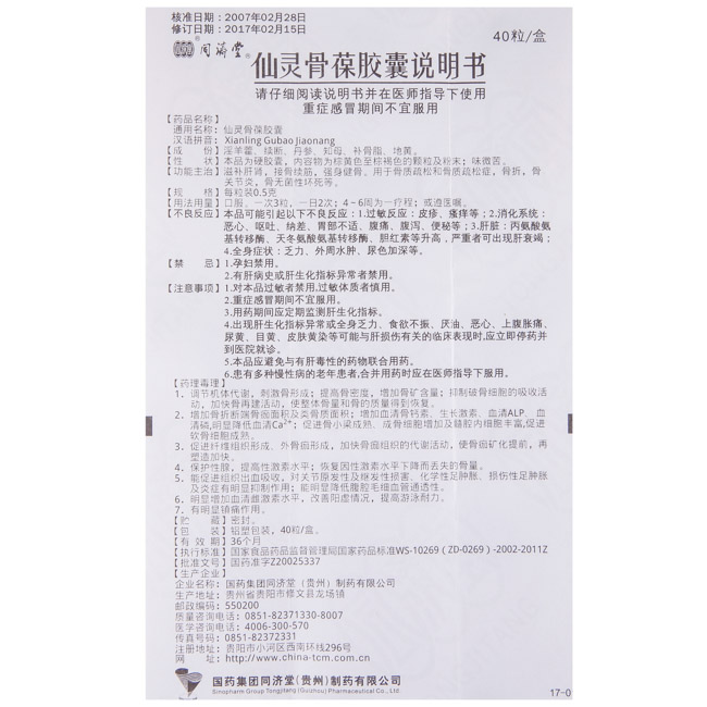 【商品名称】:仙灵骨葆胶囊