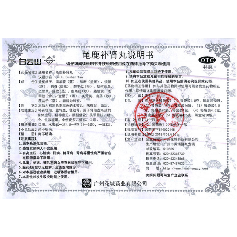 生产厂家:广州白云山花城药业有限公司