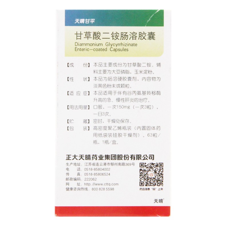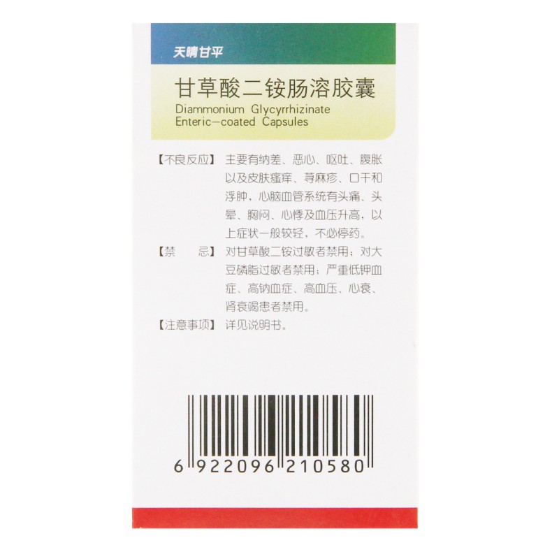 【商品名称】:甘草酸二铵肠溶胶囊(天晴甘平)