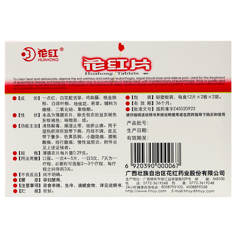 【生产厂家】:广西壮族自治区花红药业股份有限公司