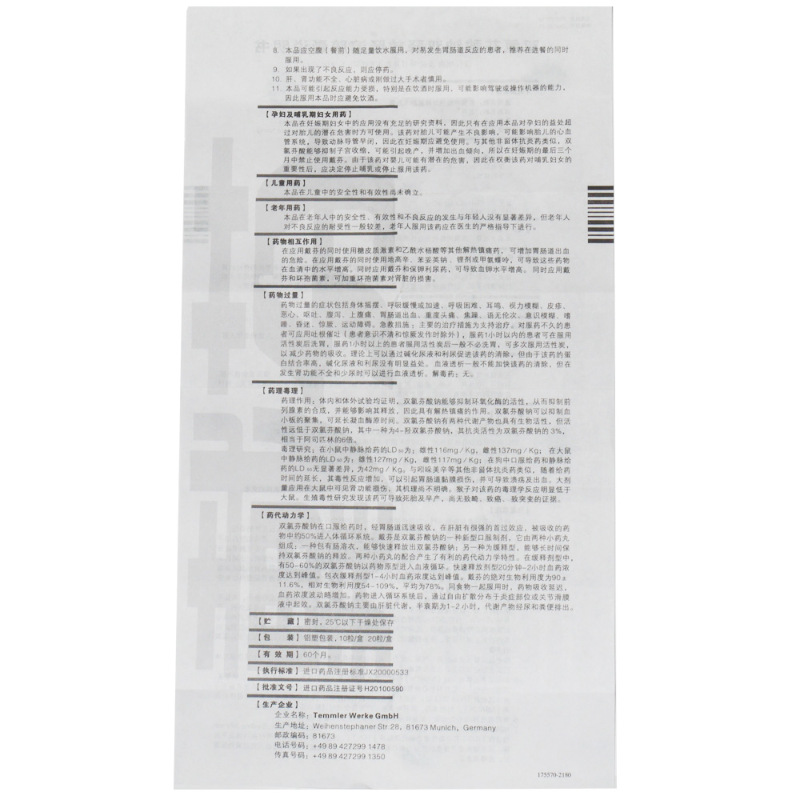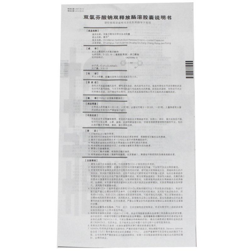 产品名称:双氯芬酸钠双释放肠溶胶囊(戴芬)