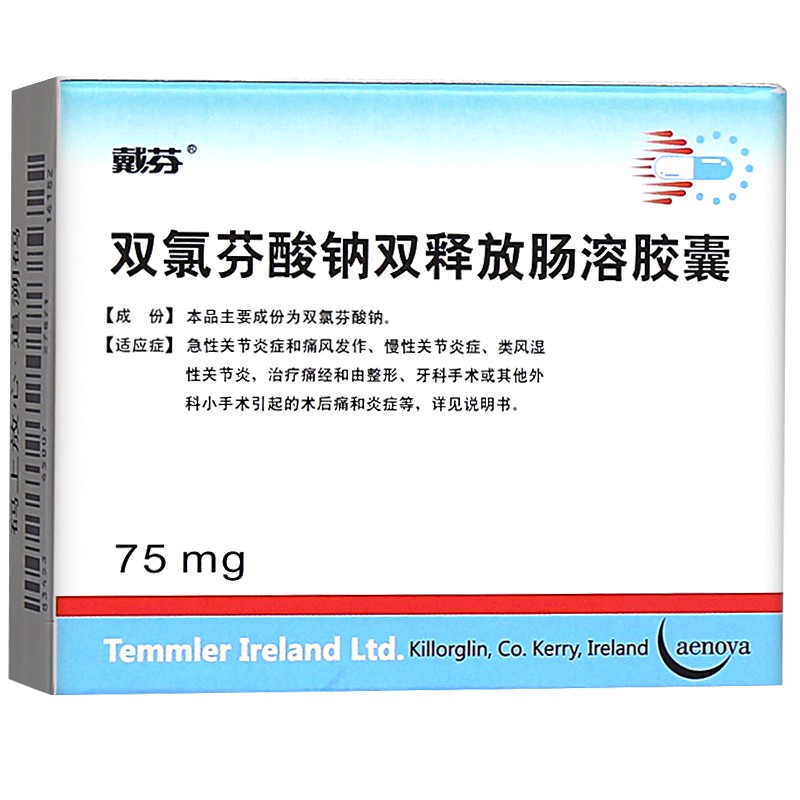 【商品名称】:双氯芬酸钠双释放肠溶胶囊(戴芬)